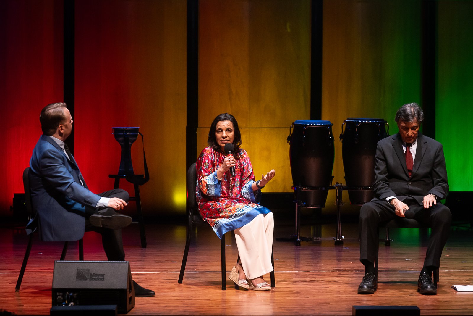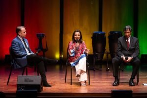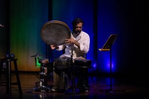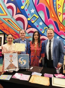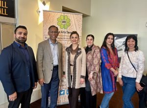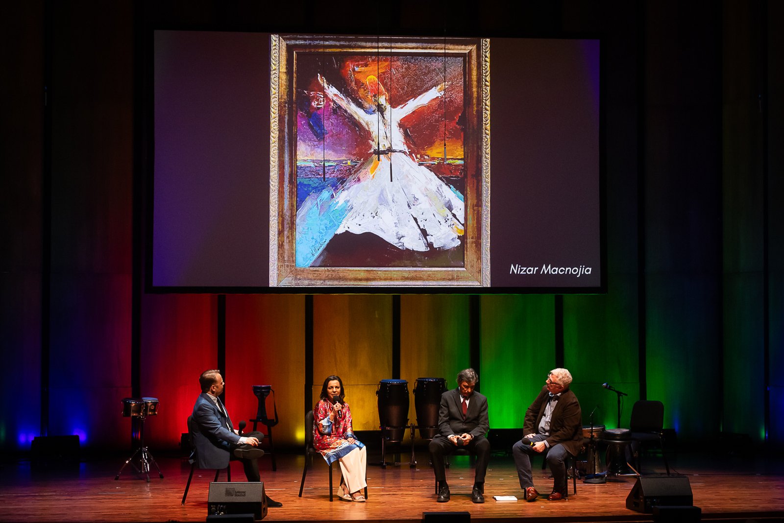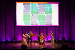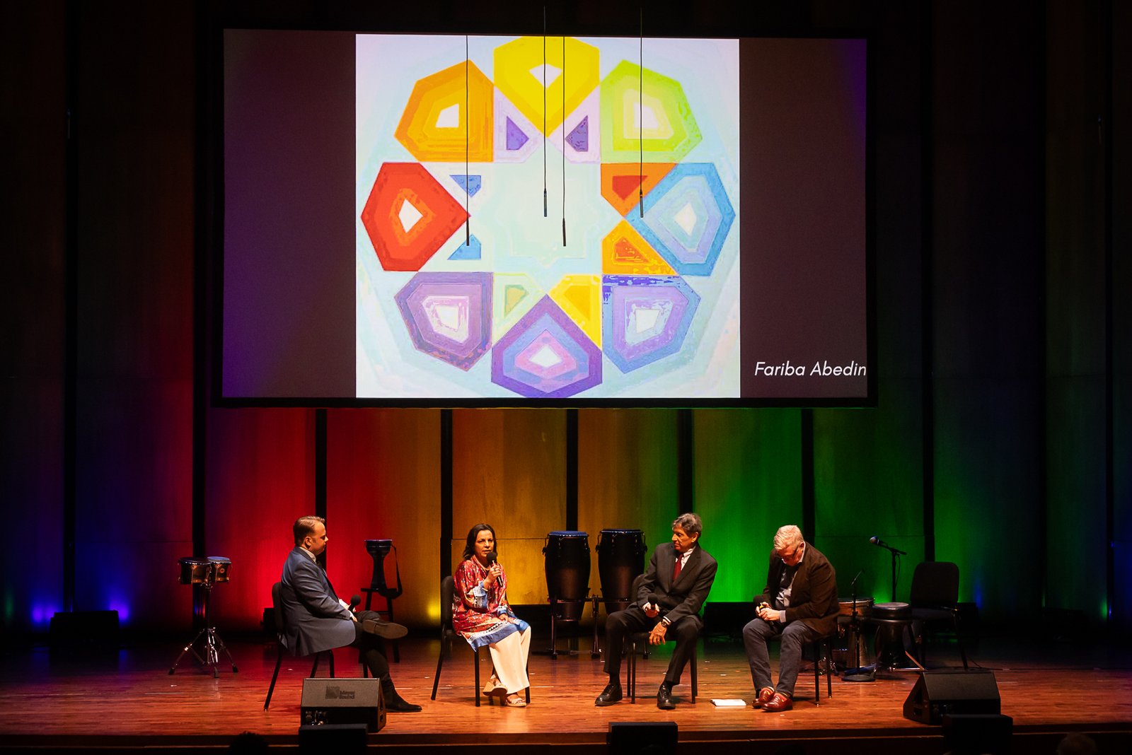 Chamber Music America’s 2025 Ensemble of the Year, the Apollo Chamber Players, invited the Islamic Arts Society to partner with them for an evening of dialogue, visual arts, and music to celebrate Houston’s multicultural landscape. IAS President, Shaheen Rahman proudly represented the Islamic Arts Society in explaining the mission and work of Islamic Arts Society to this public event audience as part of a pre-concert panel discussion. The panel was moderated by St. John Flynn, former Arts and Culture Director of Houston Public Media, and included Apollo’s founding Director Matthew Detrick, and worldclass composer, Professor Reza Vali of Carnegie Melon University, IAS artists featured live Arabic calligraphy and a curated Islamic arts display for the audience in the Zilkha Hall front lobby. Art curated by Gail Mebane.