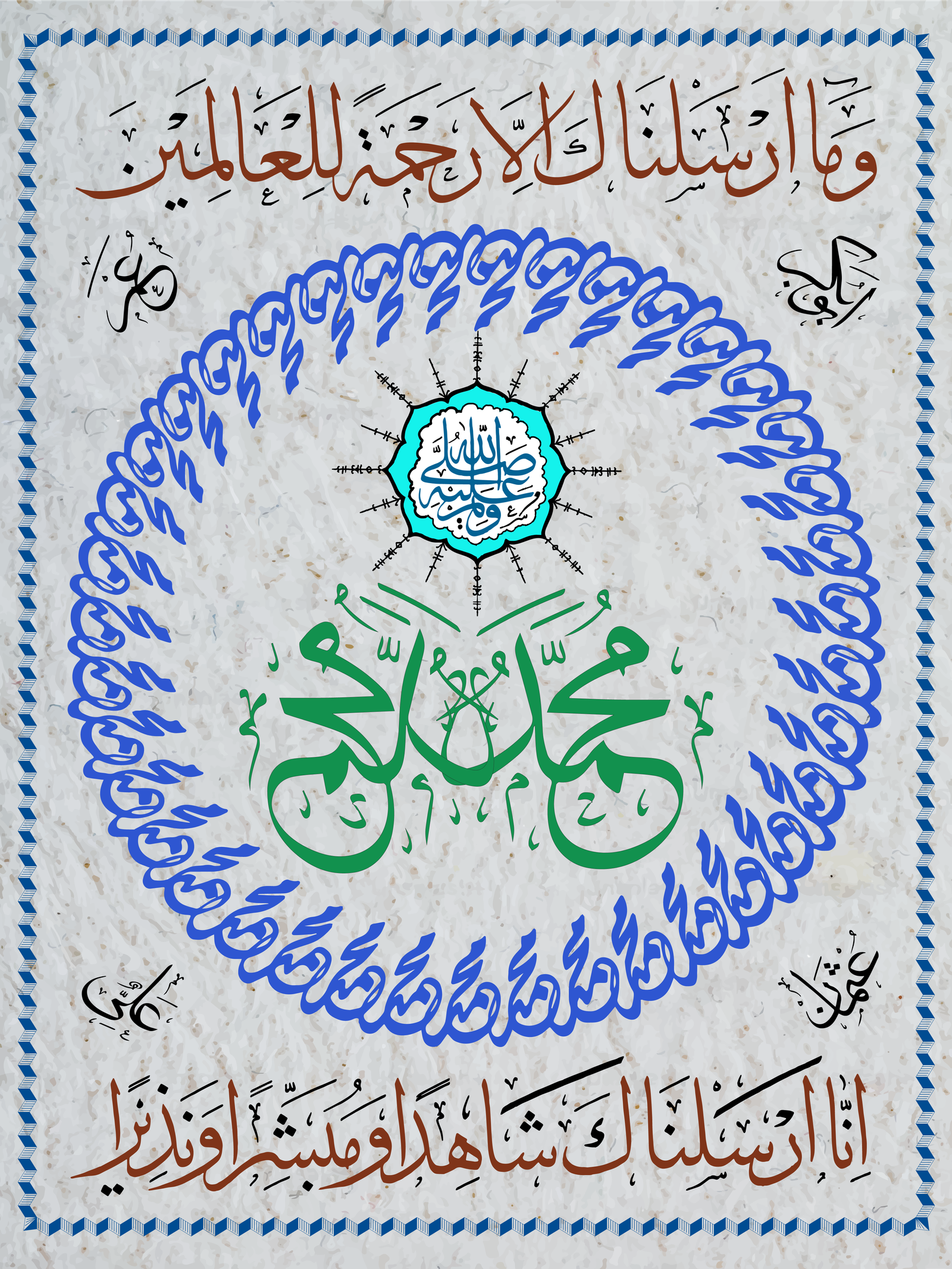 Description of artwork: This work contains an invitation Shalawat to the Prophet Muhammad as commanded in the Quran, in Surah Al Ahzab Verse 56