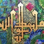 Description of artwork: The painting is titled *”Muhammad Rasool Allah (Ya Rahmatul Lillaalmeen)”* and measures 36×48 inches.