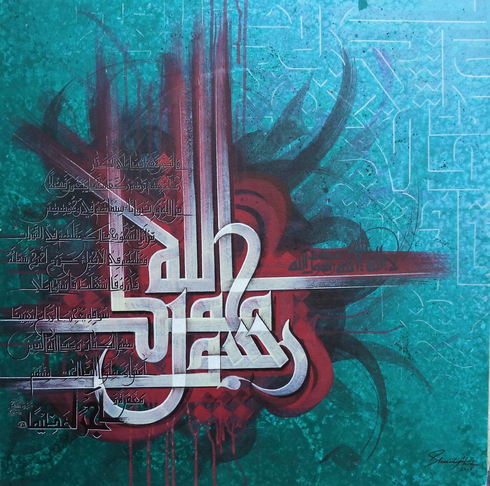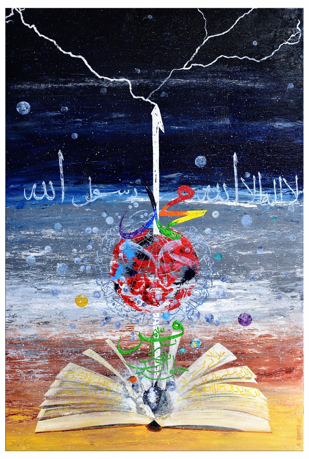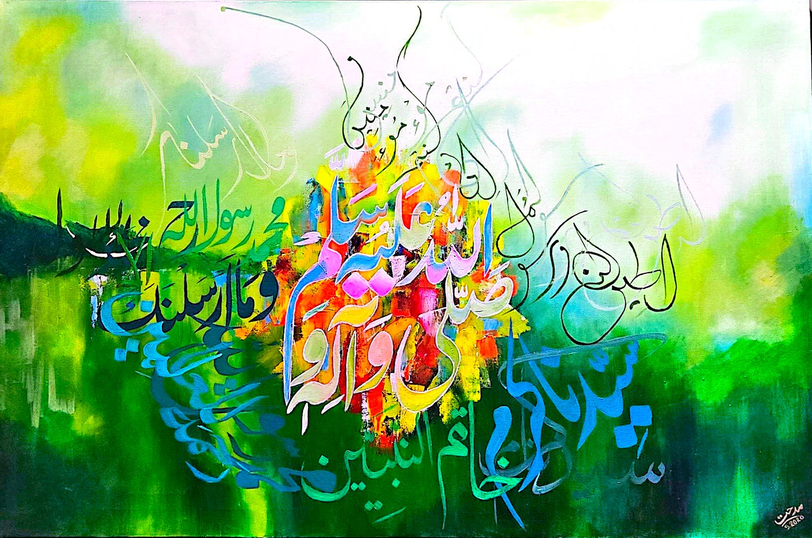 Description of artwork: This work contains an invitation Shalawat to the Prophet Muhammad as commanded in the Quran, in Surah Al Ahzab Verse 56