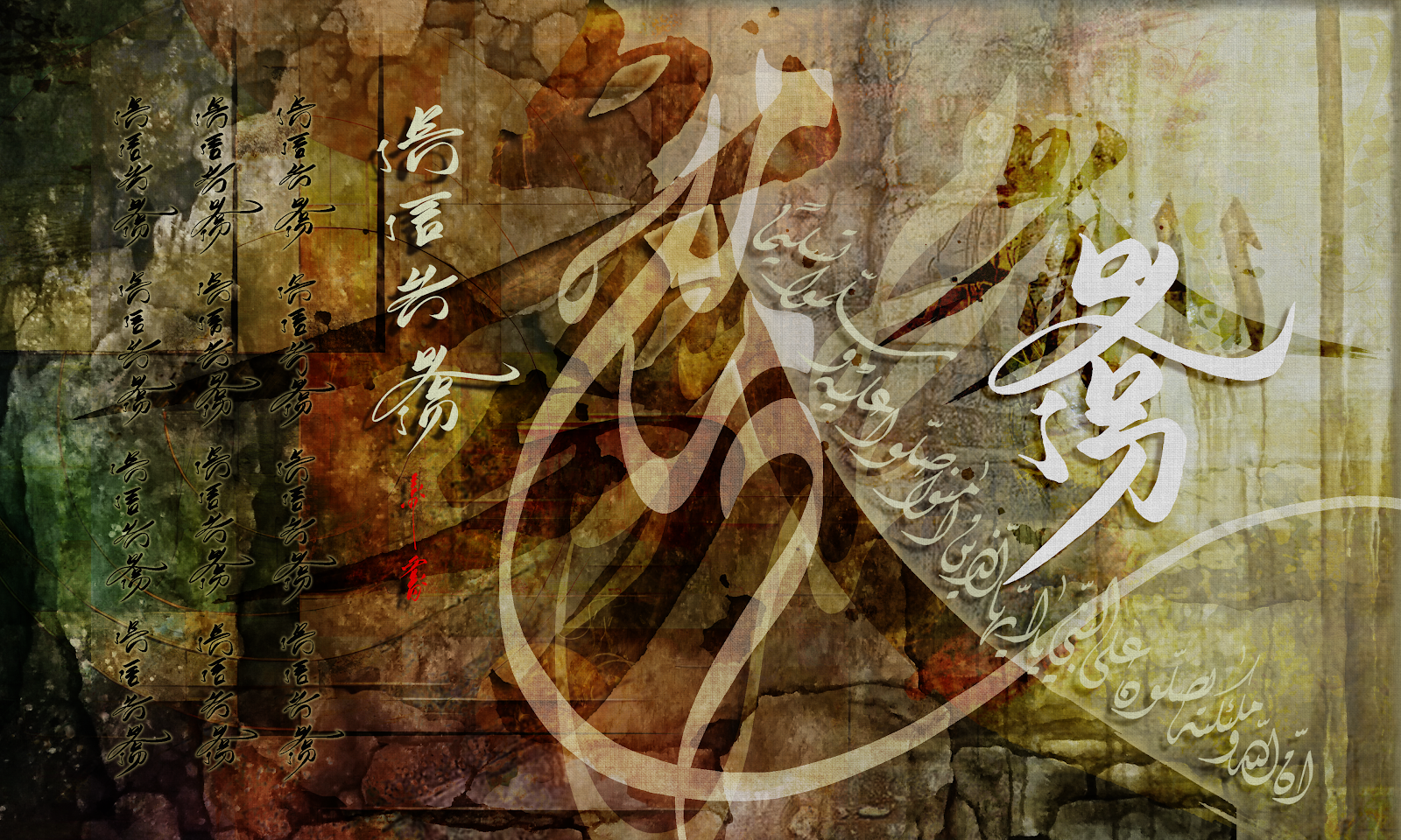 With flexible and beautiful Diwani style writing. Then I wrote Muhammad’s name and Shalawat in Chinese calligraphy style