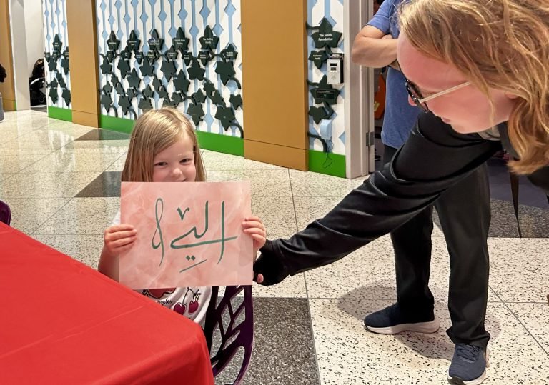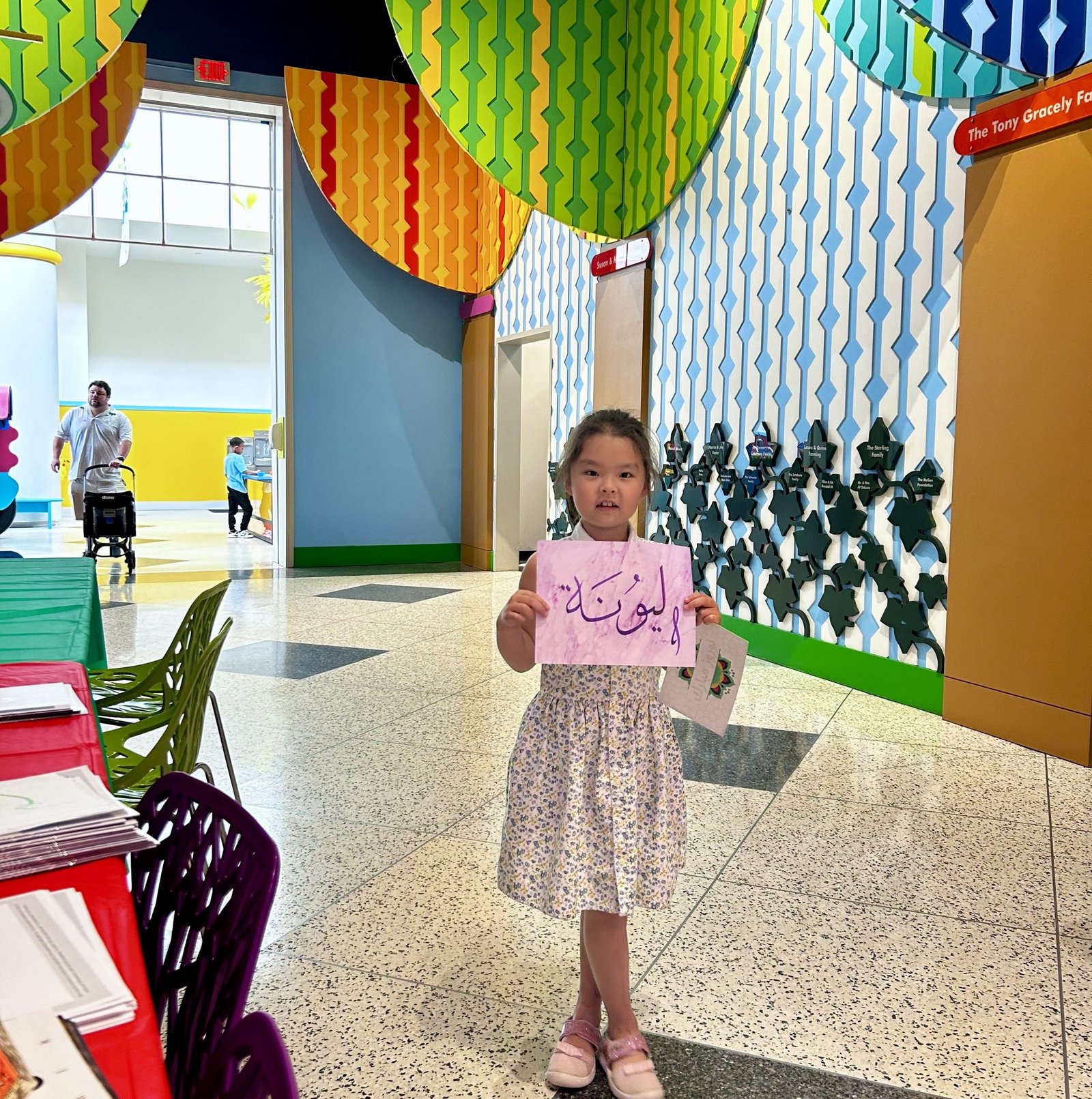 On April 6th, Islamic Arts Society artists Mustafa Yousufzad and Sana Mirza provided Arabic calligraphy demonstrations at Children’s Museum Houston ! We are so thrilled to be part of the museum’s programming for Arab American Heritage Month, and even more thrilled to bring Islamic art to Houston’s youth!