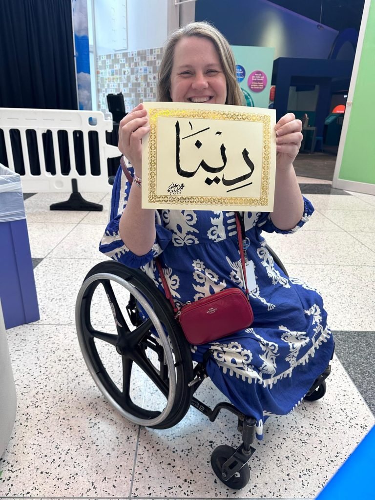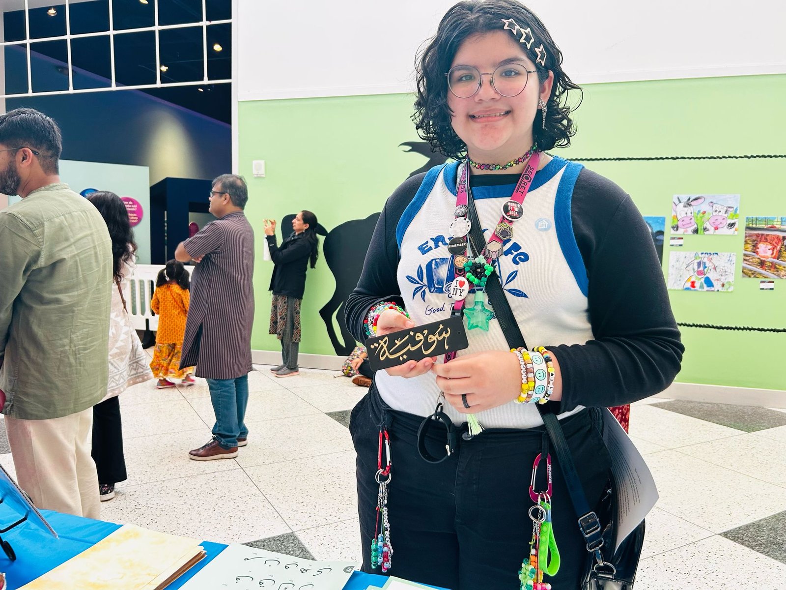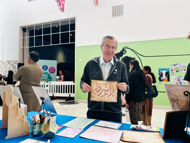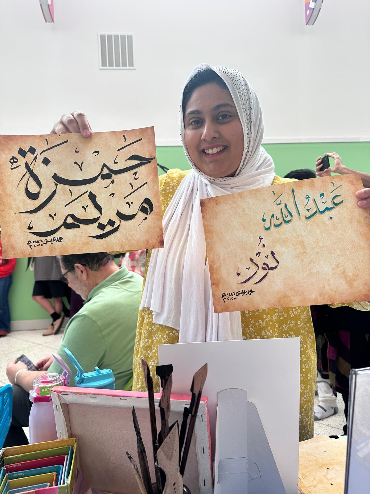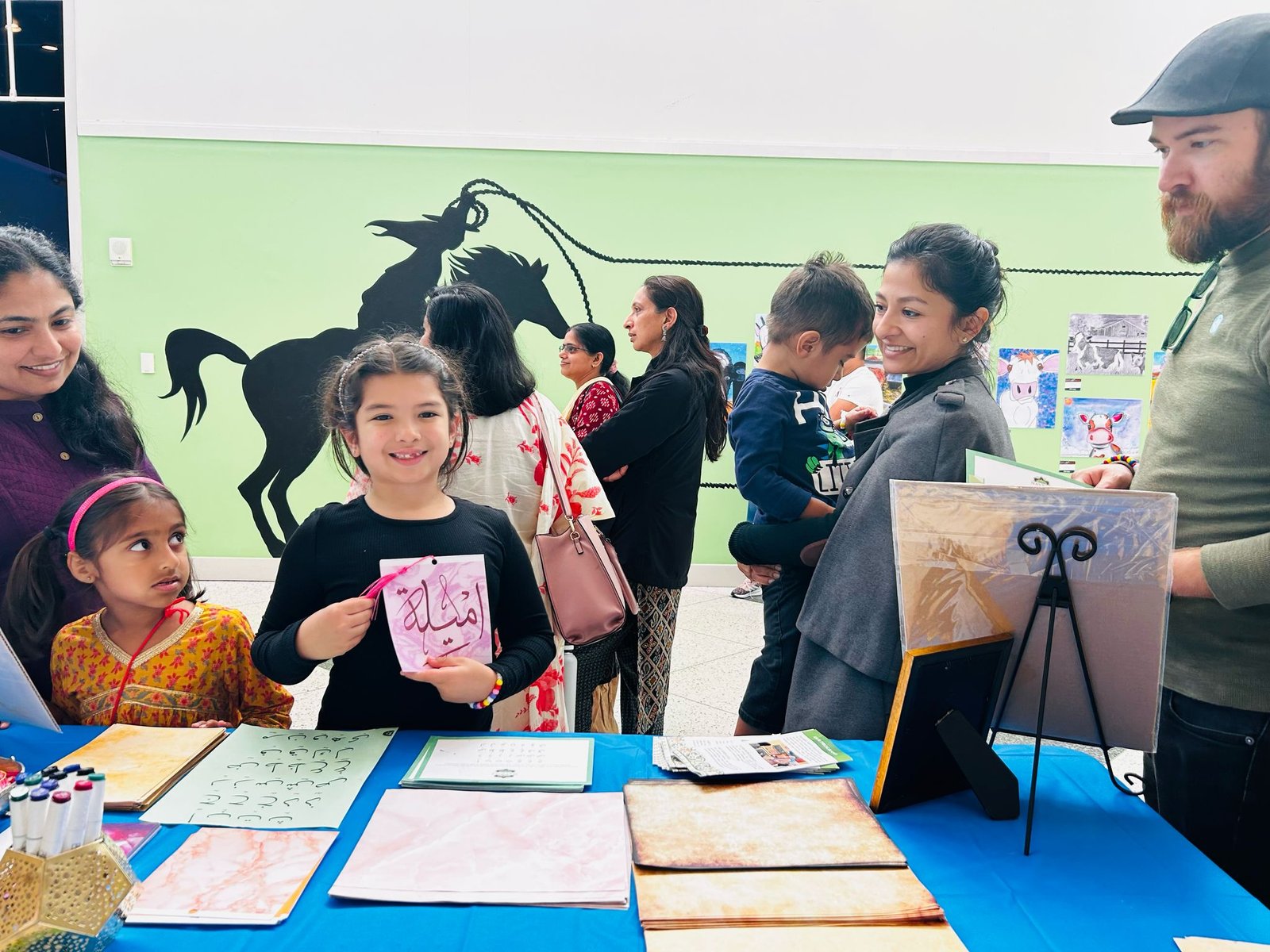 The calligraphy corner was central to the stage attraction and guest appreciated becoming familiar with the Arabic language as well as the Islamic culture with getting their own personalized names written. The event was followed with a beautiful ribbon cutting, along with wonderful speeches from curators of the exhibit, Punjabi dances and Tabla and soulful church dance performances. As an amazing addition, we are happy to highlight the rich tradition of Islam through calligraphy so appreciated by the big crowd of guests that visited our table all through out the day leading up to and after the opening ceremony.