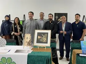 Commissioner Garcia invited the Islamic Arts Society to showcase Islamic art during the program. IAS Arabic Calligraphy artist, Mustafa Younuszad, represented the Islamic Arts Society by showcasing artwork and writing attendees names in Arabic calligraphy.