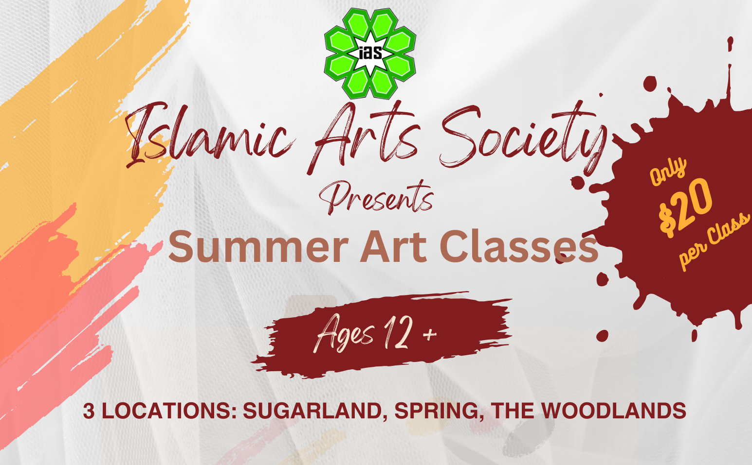 Islamic Arts Society aims to share the rich heritage of Islamic Arts. The society organizes events to celebrate our culture and promote the positive image of the Muslim community amongst the community at large. Art is a common language and binds diverse communities. By promoting Islamic arts, we hope to promote mutual understanding and to bring the broader American community together.