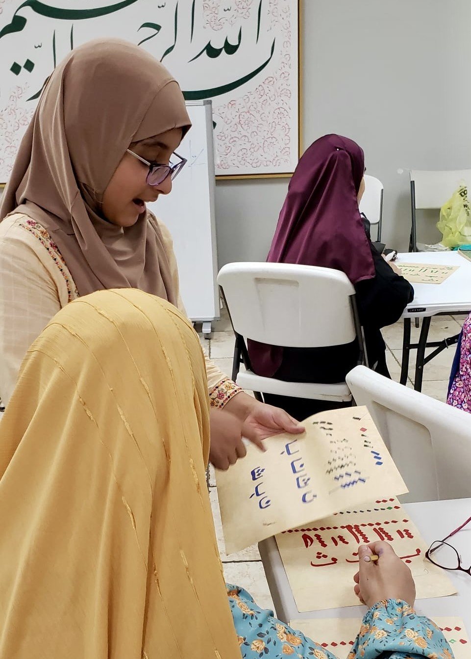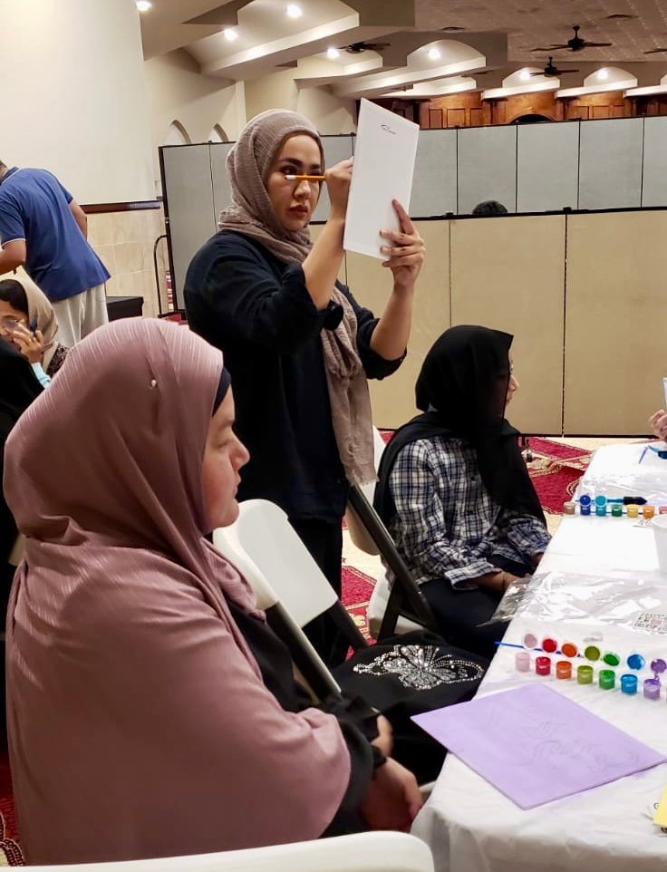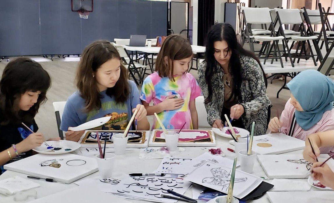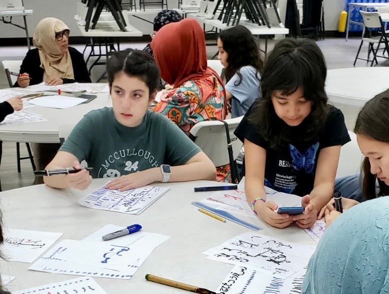 Free Classes were held in the four corners of Harris country at Masjid Al-Ansar, Masjid Al-Salam, Matyam Islamic Center and the River Oaks Islamic Center during the months of July and August 2025. Artists Sana Mirza, Mohammad Eisa, Hina Chaudhry, Behlah Saifee, Mohammad Eisa, and Monther Yusuf taught classes to students on Calligraphy, illumination and painting