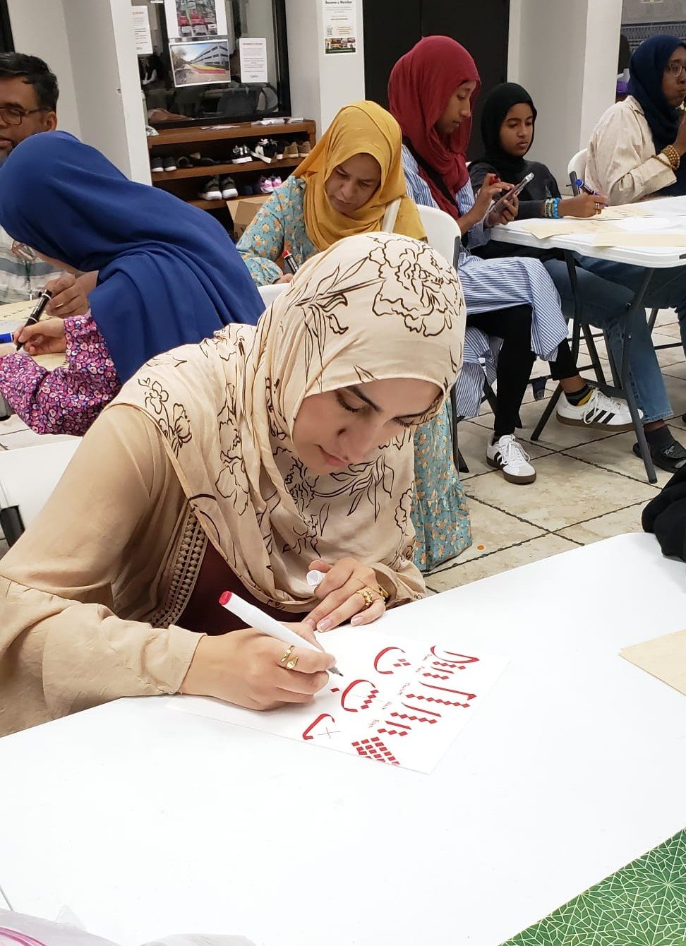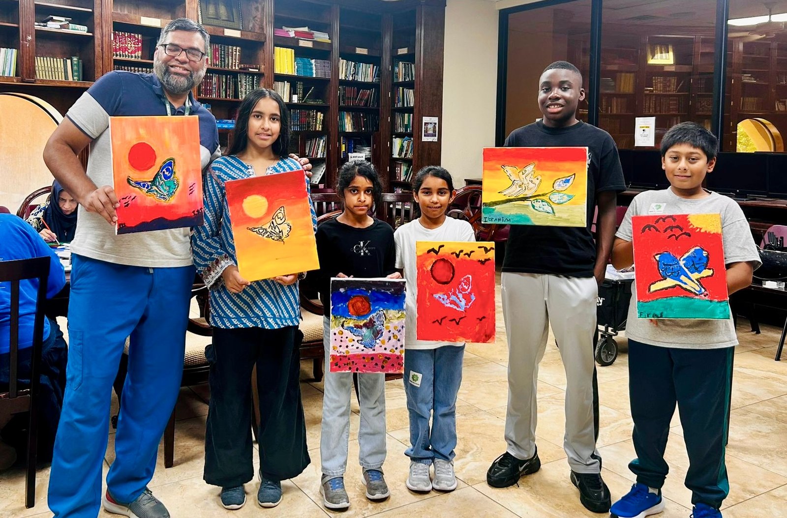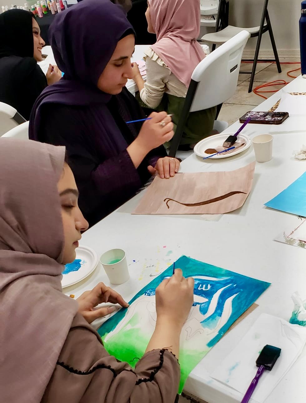 Free Classes were held in the four corners of Harris country at Masjid Al-Ansar, Masjid Al-Salam, Matyam Islamic Center and the River Oaks Islamic Center during the months of July and August 2025. Artists Sana Mirza, Mohammad Eisa, Hina Chaudhry, Behlah Saifee, Mohammad Eisa, and Monther Yusuf taught classes to students on Calligraphy, illumination and painting