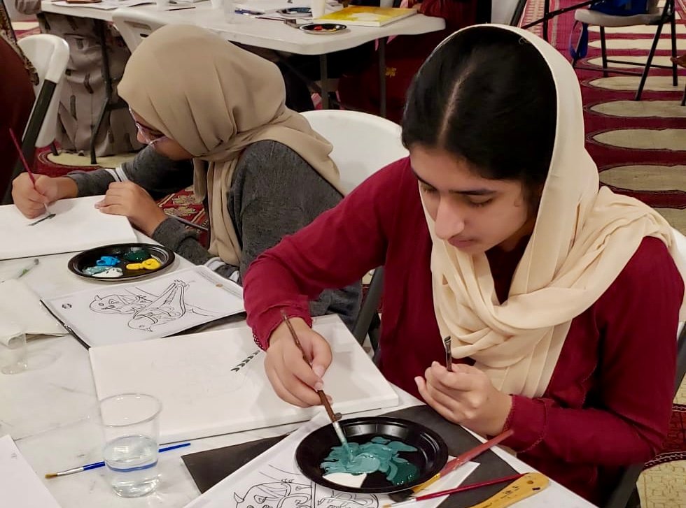 Summer art classes were conducted by the Islamic Arts Society. These classes were held at various locations around town. Students benefited from one-to-one instructions on Calligraphy, painting and elimination.